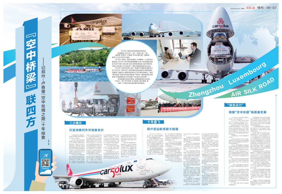 【河南日?qǐng)?bào)】“空中橋梁”聯(lián)四方———記鄭州-盧森堡“空中絲綢之路”十年探索