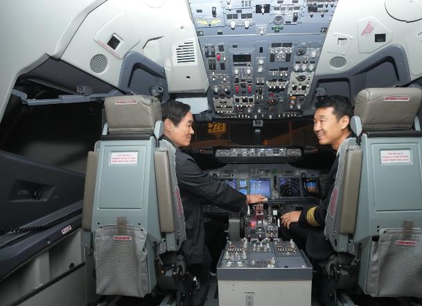 隨后,劉奇葆一行還實(shí)地了解了飛行訓(xùn)練中心和乘務(wù)訓(xùn)練中心。在全動(dòng)模擬機(jī)艙內(nèi),劉奇葆仔細(xì)查看了內(nèi)部構(gòu)造和儀表功能等,并與現(xiàn)場的教員一起進(jìn)行了試飛。