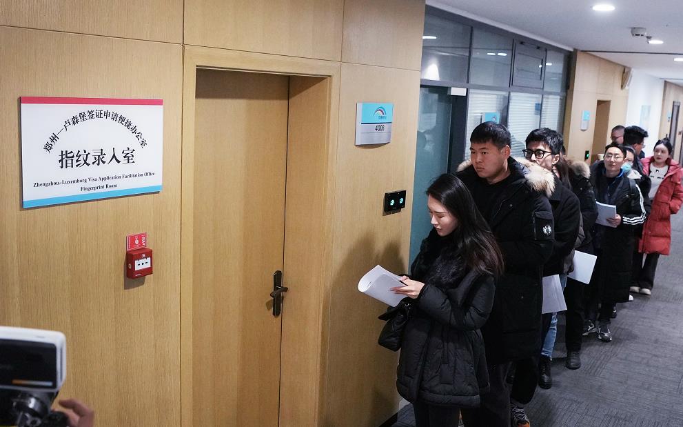 于鄭州-盧森堡客運直飛航線即將啟航之際,16日,搭乘首個航班的第一批乘客在位于鄭東新區的“鄭州—盧森堡簽證申請便捷辦公室”(以下簡稱便捷辦公室),順利完成了前往歐洲27國的申根簽證資料受理。自此,河南省及周邊區域的居民在“家門口”就能體驗前往歐洲的信息采集、簽證受理、航空直飛等“一站式”出行。