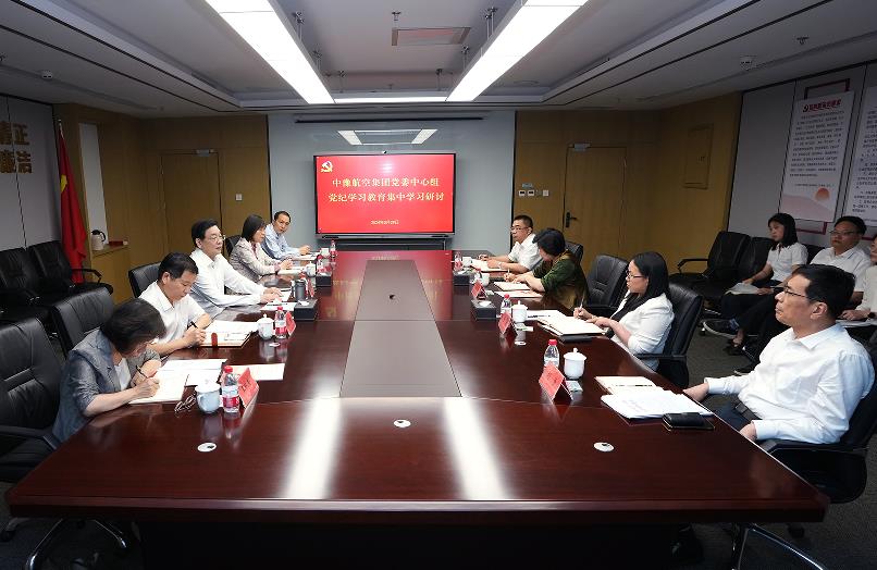 5月29日,中豫航空集團黨委理論學習中心組開展黨紀學習教育第二次集中學習研討,圍繞黨的廉潔紀律、群眾紀律進行交流。集團黨委書記、董事長張明超主持學習并講話,領(lǐng)導班子其他在鄭成員參學。