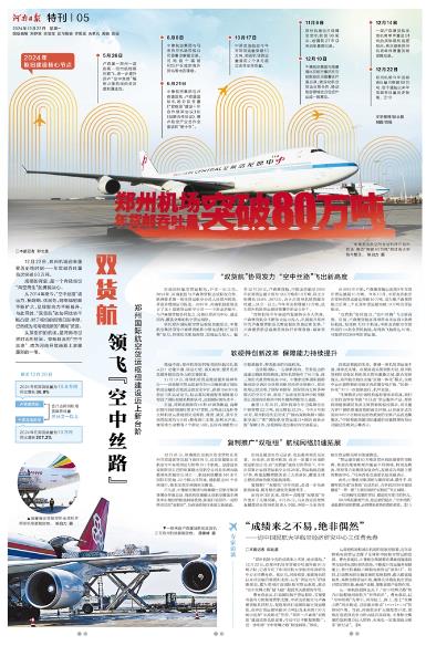 依托鄭州國際航空貨運樞紐功能定位,中豫航空集團引導盧森堡貨航和中原龍浩航空“雙引擎”發力,持續優化航線網絡、加強運力投入。截至12月20日,盧森堡貨航、中原龍浩航空2024年在鄭貨運量分別為13.6萬噸和13萬噸,同比分別增長38.8%、207.2%,合計占鄭州機場貨郵吞吐量三分之一以上;今年共實現增量12萬噸,成為鄭州機場貨運量持續攀升的龍頭骨干。