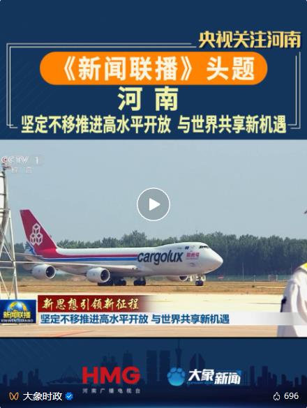8月25日,中央廣播電視總臺《新聞聯(lián)播》頭題播發(fā)“堅定不移推進高水平開放 與世界共享新機遇”主題報道,關(guān)注“空中絲綢之路”建設(shè)情況。
