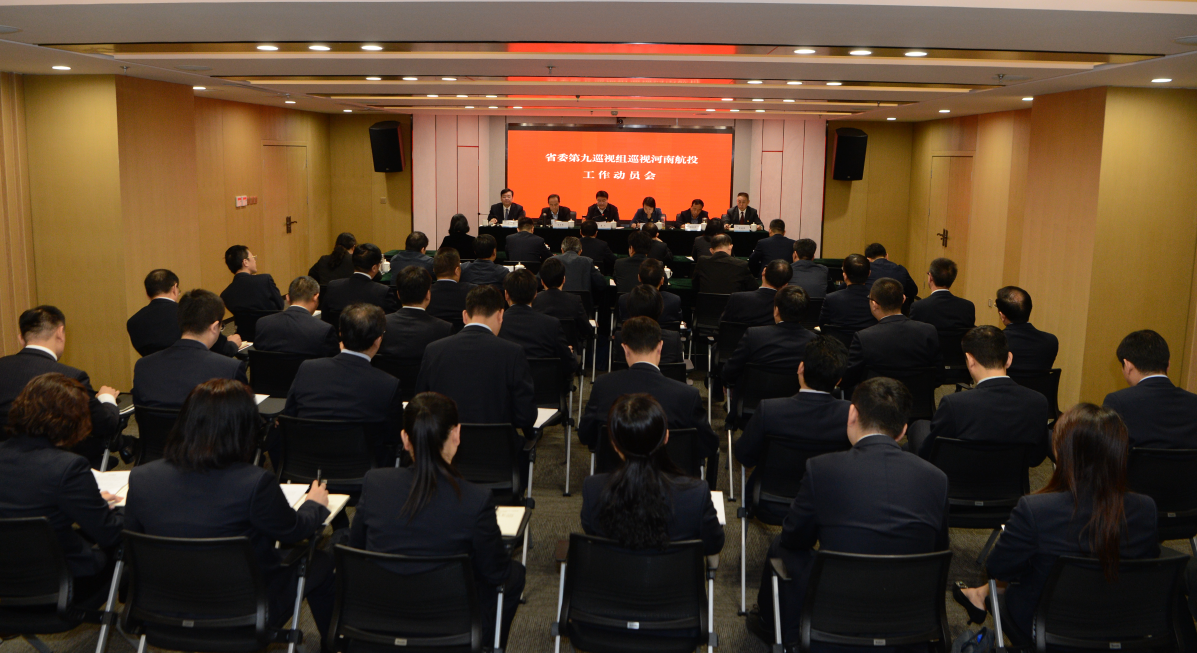 根據省委統一部署,10月10日上午,省委第九巡視組巡視河南民航發展投資有限公司(以下簡稱河南航投)工作動員會召開。省委第九巡視組組長唐飛作動員講話,河南航投黨委書記、董事長張明超主持會議并作表態發言。第九巡視組副組長楊慧中、李笑峰、張國典及相關成員,河南航投領導班子成員出席會議。河南航投各部門、子公司及項目部負責同志列席會議。